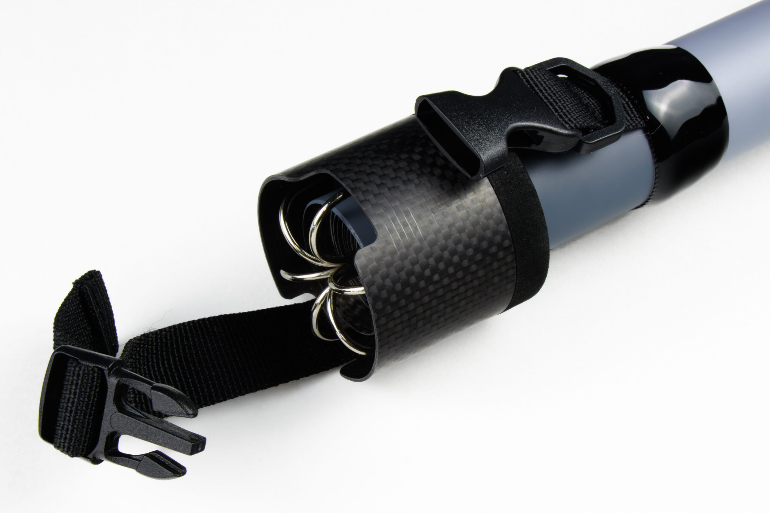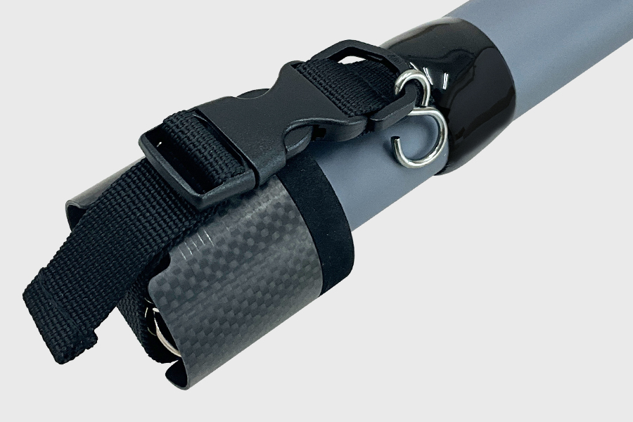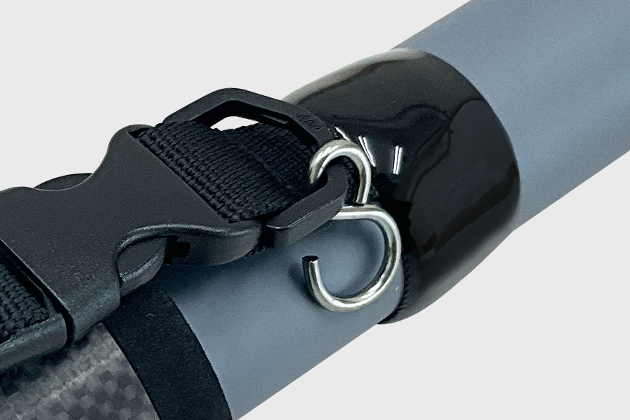 フックカバーを搭載することで、不意の衣服への刺さりや移動中の不満を改善カーボンにすることで軽量化。 また、カーボンフック収納部は400と同じサイズ。